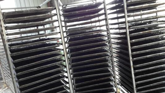 使用桑葚烘干機(jī)干燥處理,時(shí)間要18個(gè)小時(shí)就可以干燥處理完了。一般每4公斤鮮桑葚可制成1公斤桑葚干。將經(jīng)整理去雜后的桑葚裝篩子,裝入物料車內(nèi)。每臺(tái)物料車不宜超過14個(gè)篩子,篩子層間距控制在10公分左右。以10P機(jī)為例,不要超過10臺(tái)物料車,以保證烘干房?jī)?nèi)有合理間隙位,利于熱風(fēng)通過。