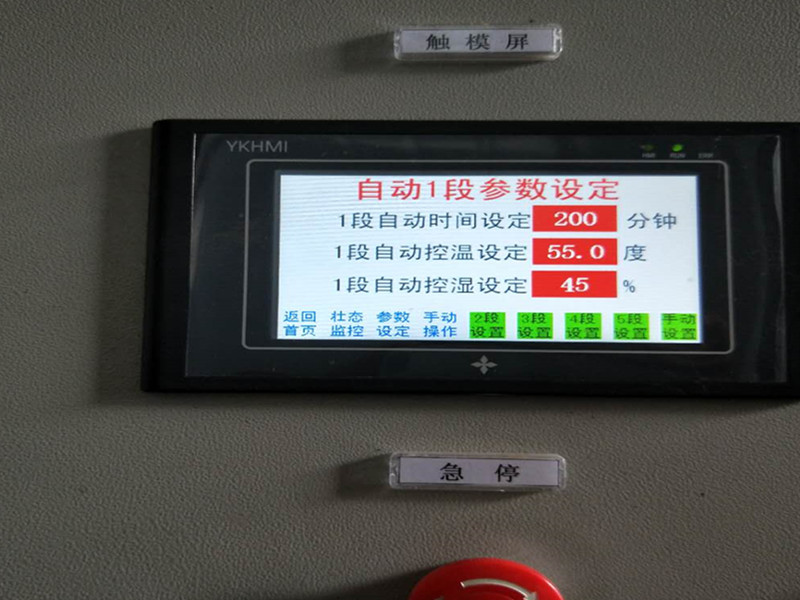 首先開機,烘干房溫度達到30度時將裝滿紅薯片的物料車推入烘干房,設定目標溫度40度,時間2小時。