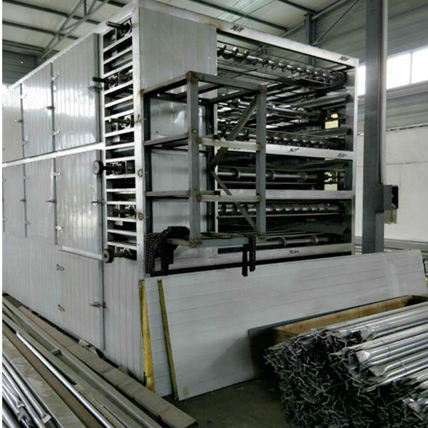該設備熱風進風溫度通過比例調節(jié)閥顯示控制,從而控制進風溫度在設定范圍內;網帶速度變頻可調,保證了物料的停留時間,也確保了出料品質;傳動電機、攪拌電機、排濕電機變頻可調;箱體上各部位門保溫好、密封好,開啟關閉方便;每個單元兩側均設有清洗檢修門,可以直接沖洗設備內部;帶機底層網帶底部做成傾斜面,以方便物料收集、清理;設備制作完畢后,傳動輸送系統(tǒng)試運轉,無異常響聲和卡阻。該設備是在傳統(tǒng)網帶式干燥設備基礎上研究開發(fā)的專用干燥設備,由進料系統(tǒng)、布料系統(tǒng)、進風過濾系統(tǒng)、加熱冷卻系統(tǒng)、傳動系統(tǒng)、旁路過濾系統(tǒng)、出料系統(tǒng)、排風排濕系統(tǒng)、控制系統(tǒng)等組成。工作時,由進料系統(tǒng)給料至布料系統(tǒng),將物料加入干燥設備,物料與穿過網帶的穿流式熱風、冷風相遇,進行傳熱、傳質,熱風循環(huán)利用,使能耗更低,達一定濕度后,部分強制排濕帶走水分,物料完成干燥并冷卻。我公司可根據用戶所需干燥蔬菜的特性以及工藝要求,設計制作出最適用、最佳品質的干燥設備,可滿足根、莖、葉類條狀、塊狀、片狀、大顆粒狀等蔬菜干燥,并保證干燥質量,如蒜片、南瓜、胡蘿卜、魔芋、山藥、竹筍、辣椒、洋蔥、蘋果等。