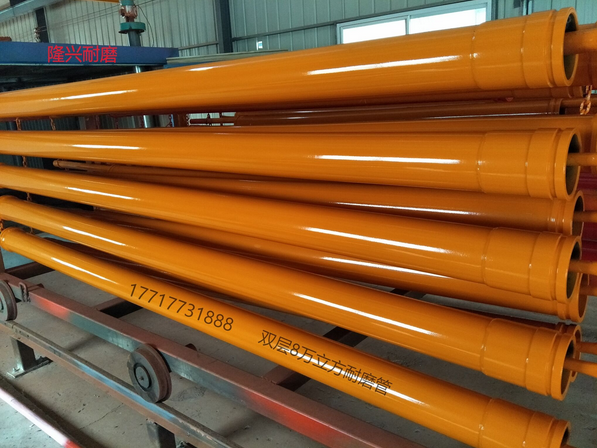 隆興研發(fā)的高耐磨雙層復(fù)合硬化直管,雙層復(fù)合彎管,雙金屬內(nèi)鑄復(fù)合彎管,變徑管系列產(chǎn)品,采用國際最高端技術(shù)高頻內(nèi)壁淬火,硬度達(dá)到65-68HRC,提高了產(chǎn)品使用壽命,輸送混凝土方量達(dá)到50000--80000立方,是一般耐磨管壽命的3-5倍。